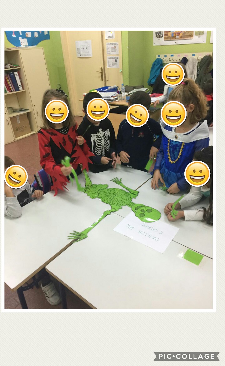 Para motivarles recibimos la visita sorpresa del esqueleto "Anacleto" el cual traía una carta en la que nos invitaba a jugar, teníamos que encontrar sus partes y formarle por equipos.